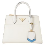 이 프라다 화이트 토트백은 고급스러운 디자인과 깔끔한 색감이 돋보이는 제품이에요. 골드 로고 장식과 블루 포인트가 세련된 느낌을 더해주고, 다양한 스타일에 매치하기 좋습니다. 넉넉한 수납공간과 탄탄한 가죽 소재 덕분에 실용성과 내구성 모두 만족스러워 데일리 백으로 활용하기에 제격이에요.